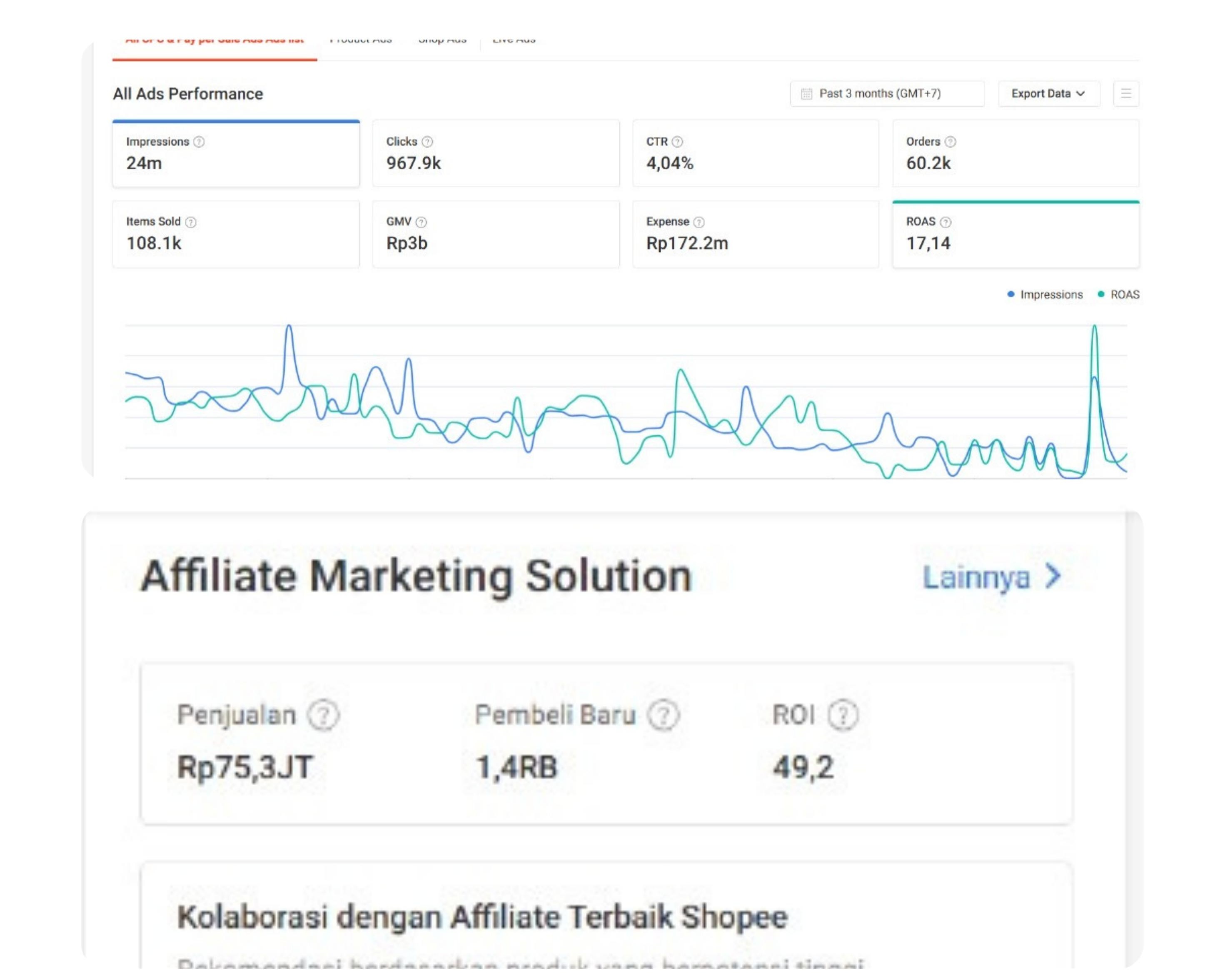 Mengimplementasikan dan mengoptimalkan iklan di e-commerce, mengelola dan mengoptimalkan Meta Ads untuk beberapa klien, serta meningkatkan pendapatan berbagai perusahaan melalui Shopee, Meta Ads, dan TikTok Ads.